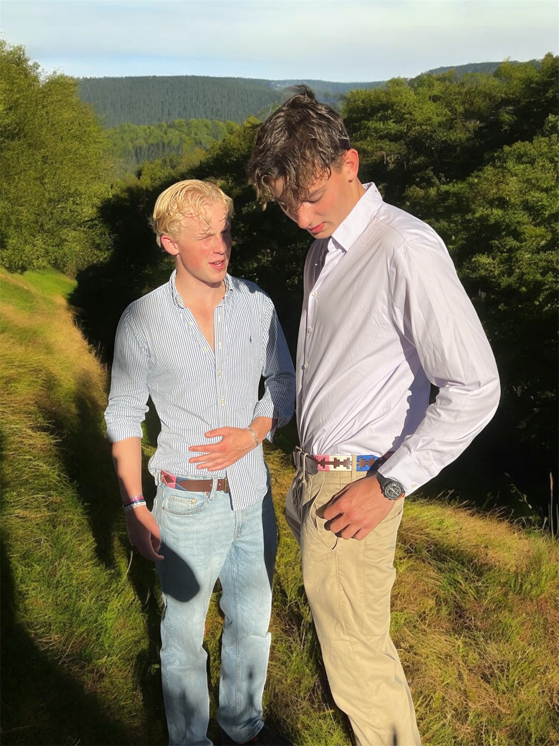Der C&S Polo Belt „Rosado y Azul“ vereint traditionelles Handwerk mit modernem Design. Gefertigt aus braunem Rindsleder und versehen mit einem markanten Stufenmuster in Rosa, Weiß und Blau, wird er zum echten Blickfang.